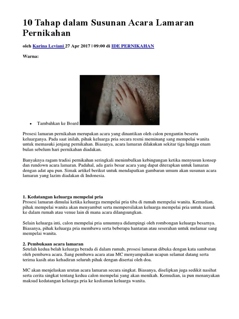 Billahitaufiq walhidayah, wassalamualaikum warahmatullahi wabarakatuh. Sebaliknya kami mengharapkan bahwa ini merupakan awal bagi hubungan kekerabatan yang lebih kekal lagi. 87 77 87 menganggap dokumen ini bermanfaat 77 suara 131k tayangan 2 halaman. Selamat siang salam sejahtera untuk kita semua. Menumbuhkan kesan berkomunikasi dengan hadirin atau peserta. Usut punya usut, ternyata alasannya adalah karena saya seorang native speaker bahasa jawa. Alhamdulillahi robbil alamin assholatu wassalamu ala asyrofil ambiyai wal mursalin. Berikut ini tersedia beberapa artikel yang menjelaskan secara lengkap tentang kata sambutan acara lamaran pertunangan. Mengucapkan salam, ucapan terima kasih, serta sapaan dengan tepat. √ 100+ contoh susunan acara pernikahan | akad & Contoh soal dan contoh pidato lengkap contoh kata sambutan acara. Avajaistarjouksena nyt katsastus päästömittauksilla vain 49. Contoh teks naskah pidato kata sambutan pihak wanita acara khitbah lamaran 2 yang terhormat bpk.